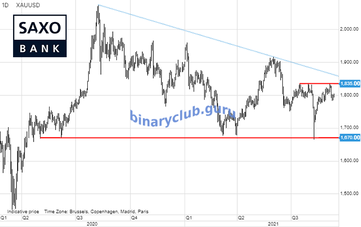Пока данные не докажут обратного, рынок драгоценных металлов не будет в топе списка покупок управляющих фондами, поэтому, несмотря на сохраняющийся высокий физический спрос в Индии и Китае, а также со стороны центральных банков, этот металл в настоящее время застревает между 1 700 до 1 900 долларов. На этой неделе все внимание будет обращено на заседание FOMC 22 сентября, на котором рынок будет искать подтверждения того, что банк начнет сокращать свою схему массовой покупки облигаций. Размер и скорость сокращения, вероятно, определят краткосрочное направление по цене, и для улучшения прогноза золоту необходим твердый прорыв выше 1 835 долларов. Пока этого не произойдет, а мы еще верим, что это произойдет, нет серьезных причин для того, чтобы гнаться за существующими позициями или наращивать их.
