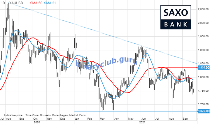 Золото и серебро все также вызывают опасения: они стабилизируются на фоне падения доходности, а затем идут вниз, когда она немного повышается. Прошлая неделя не стала исключением: золото испытывало трудности как до, так и особенно после заседания FOMC в прошлую среду, на котором председатель ФРС Джером Пауэлл провел неожиданно «ястребиную» пресс-конференцию, заявив, что ФРС готова начать сокращение ставок с ноября, а первое повышение ставки будет отложено до конца 2022 года. Самое сильное падение произошло в прошедший четверг, когда, как уже упоминалось, Банк Англии сумел ввести рынок в заблуждение, объявив о первом повышении ставки намного раньше, чем запланировано в США, то есть потенциально уже в феврале.