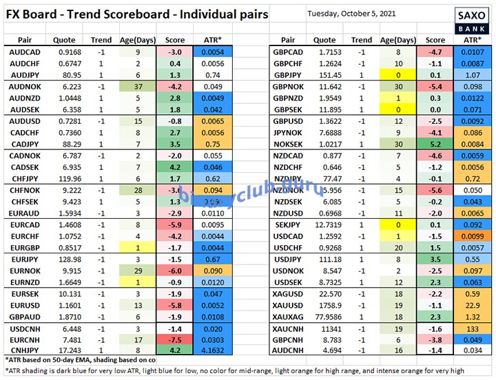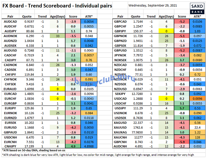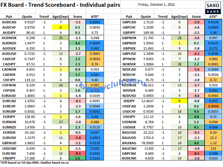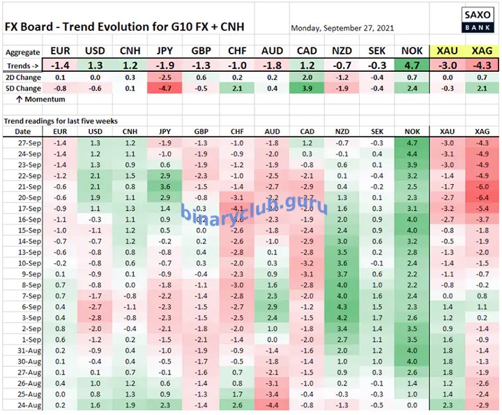 Поскольку Китай переходит на Золотую неделю, которая начнется завтра и до следующего четверга, интересно посмотреть, продолжит ли юань отслеживать последующее повышение курса доллара США за этот период времени. В других местах обратите внимание на серьезную потерю высоких значений норвежской кроны, несмотря на продолжающийся рост цен на природный газ, а также на то, что новозеландский доллар и фунт стерлингов находятся в гонке ко дну).