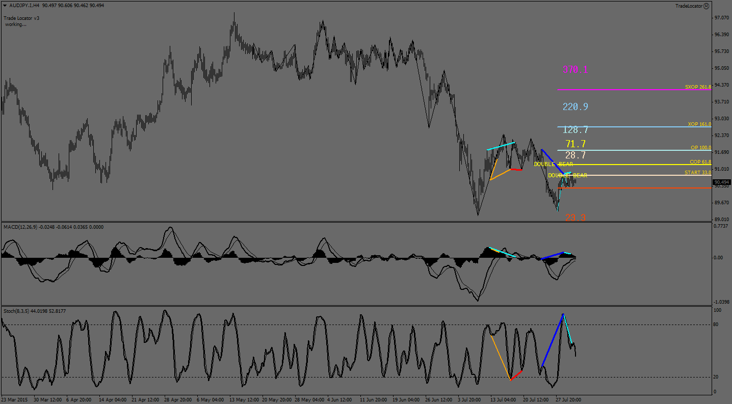 На данном графике образовался нисходящий тренд. Где медвежий рынок взял верх над быками в следствии чего произошел пробой линии поддержки ценового канала. Цена продолжит падение судя по сигналам индикаторов Stochastic и Ichimoku к уровню Фибоначчи 50.