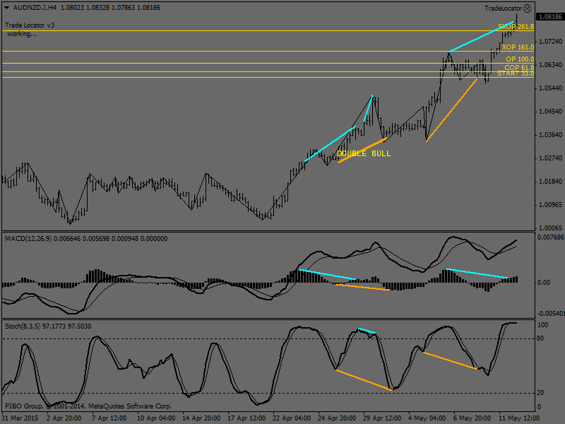 На графику изображен нисходящий тренд. Цена при подходе к линией поддержки которая находится в на одной оси с уровнем Фибоначчи (черного цвета) отметка 100(1,08122) отбилась и стремится к линии сопротивления делая боковые движения к значению 1,08122.