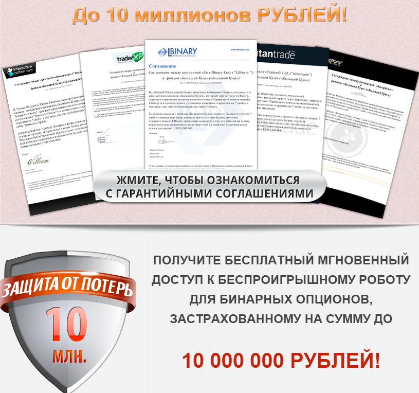 Автоматически робот для заработка денег на бинарных опционах Большой Куш, обещает сто процентов прибыльных сделок и ноль убыточных. Отзывы говорят обратное, так ли это, и чем привлекают в это проект? Давайте разберемся подробнее!