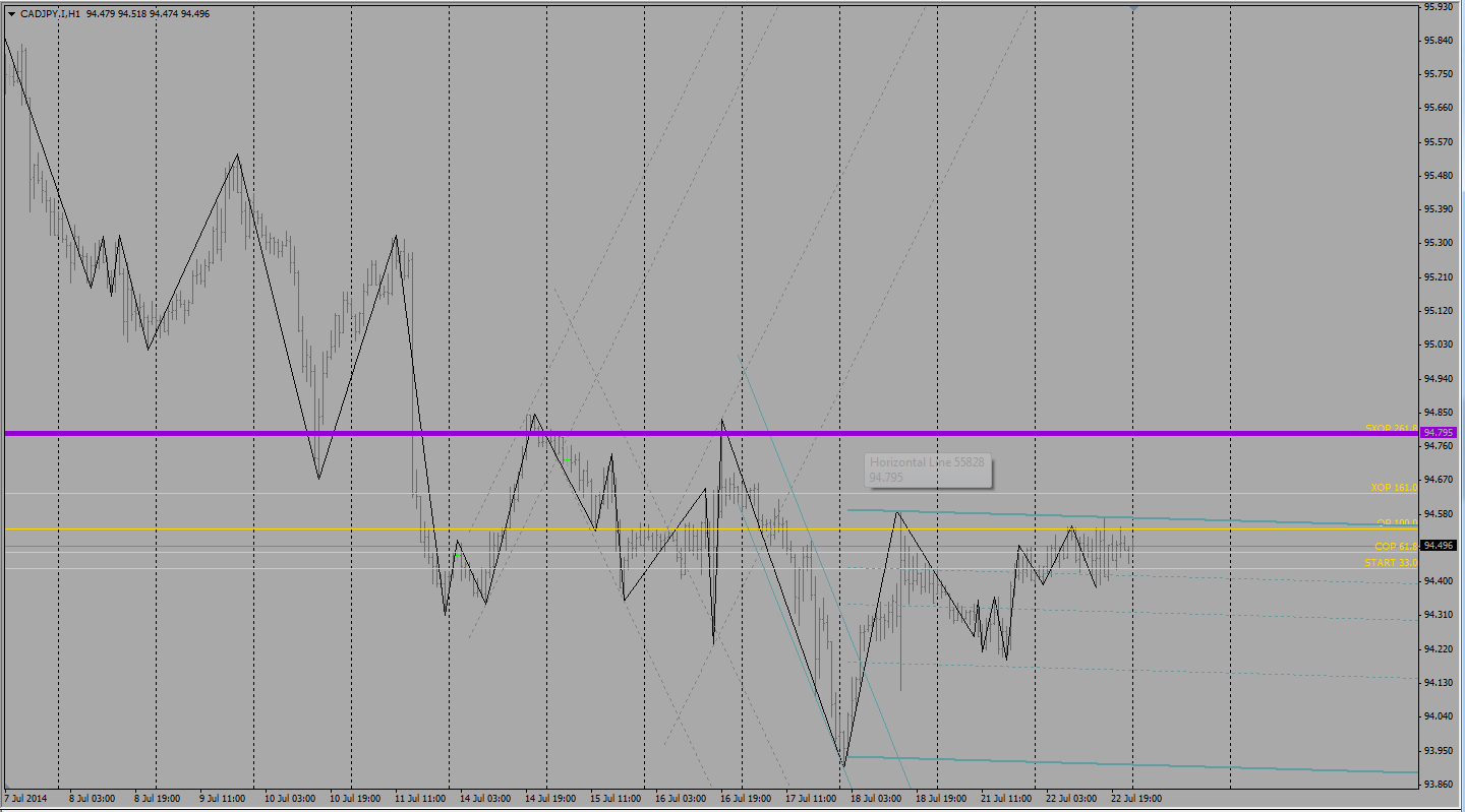 По рассматриваемой валютной паре на часовом графике если ориентироваться на уровни ДиНаполи то можно рассчитывать на рост курса пары к супер расширенной целевой точки ДиНаполи = 261.8%, которая расположена на уровне 94.79. Ранее по паре была пробита верхняя граница ловольно узкого нисходящего канала, но образование восходящего канала пока для пары не наблюдаю.