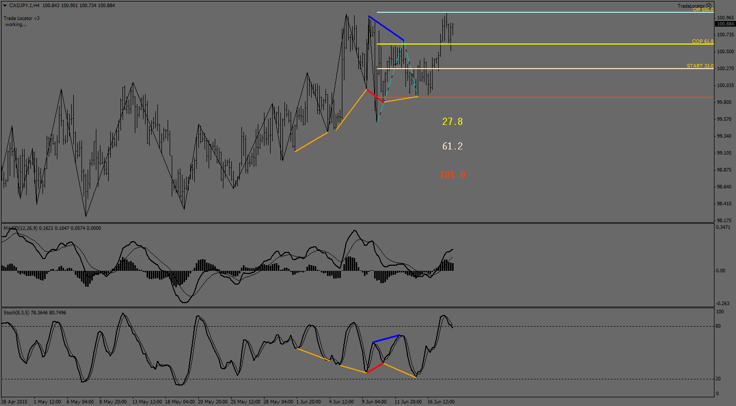 По валютной паре канадец иена на сегодня имеем формирования сигнала к покупкам по часовому графику подтвержденный формированием бычьей дивергенцией, анализ 4-х часового графика подтверждает возможность для роста курса по паре к расширенной целевой точке ДиНаполи = 161.8% и далее уже по факту пробоя указанного уровня к супер расширенной целевой точке ДиНаполи = 261.8% где можно зафиксировать прибыль по покупкам.