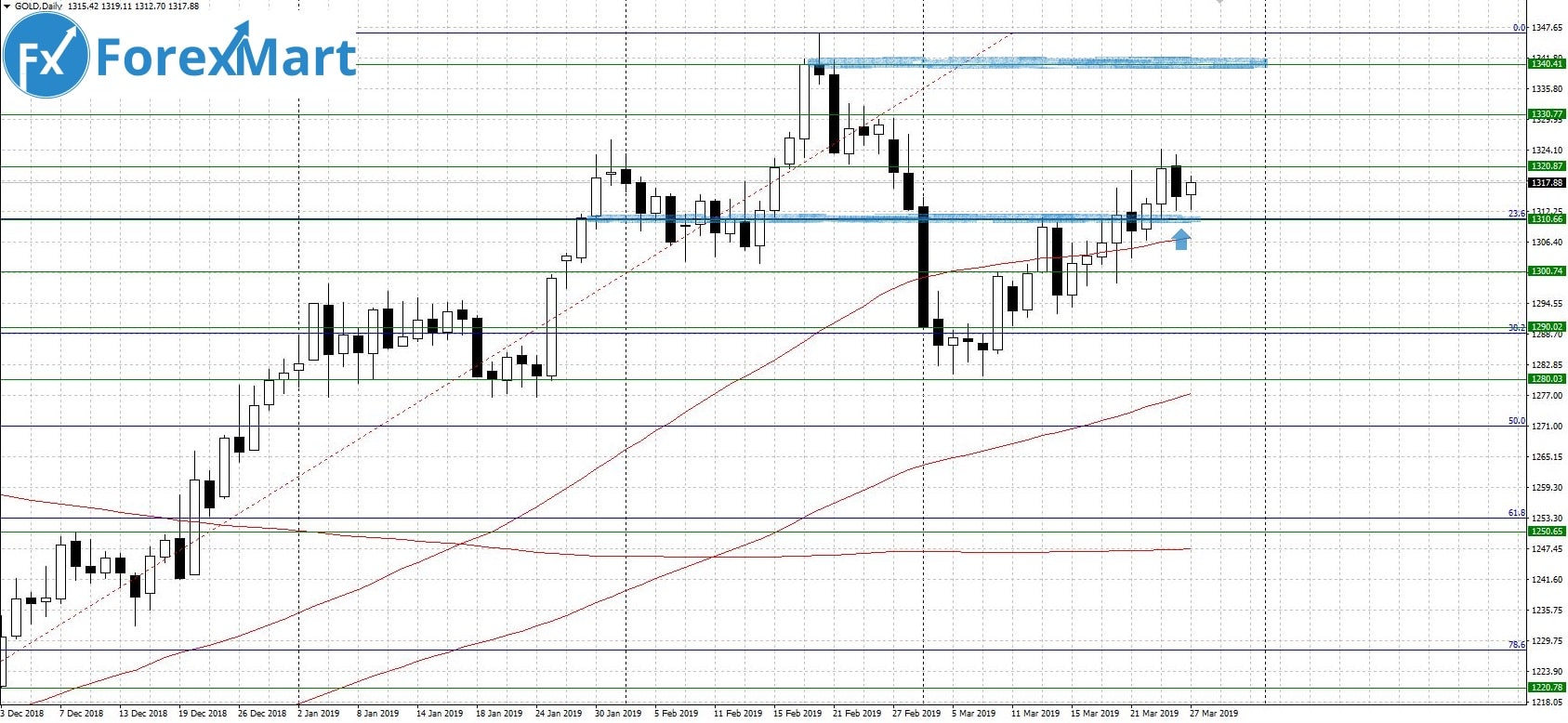 XAU/USD. 27.03. «Внутренний бар» от 23.6 Фибо