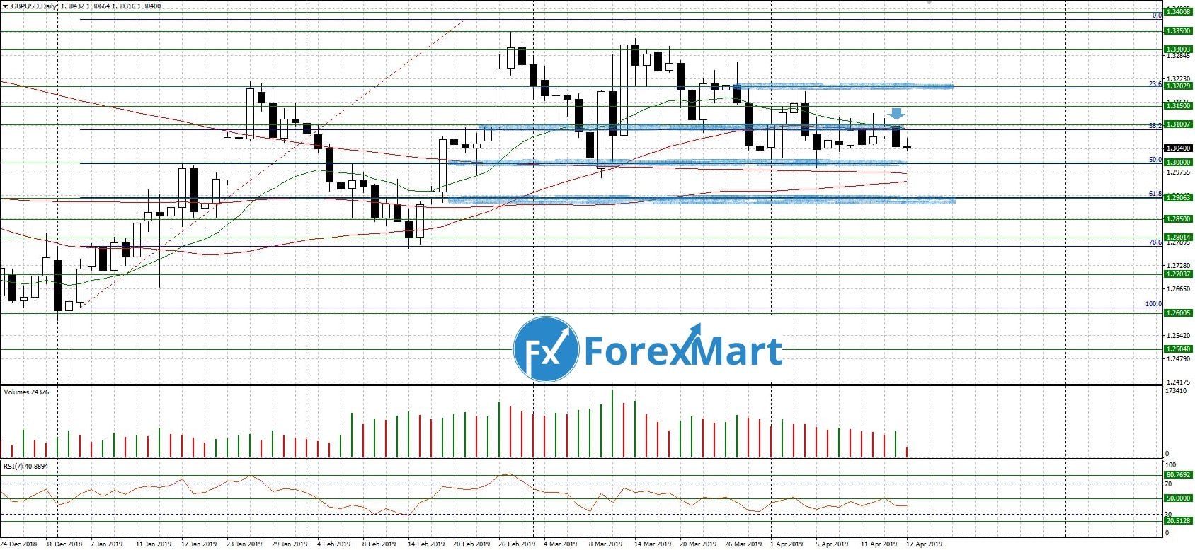 В ближайшее время ю ожидаем тестирования нижней границы боковика – круглого уровня 1.3000. В случае успеха можно прогнозировать дальнейшее снижение по направлению к среднесрочной цели на отметке 1.2800.