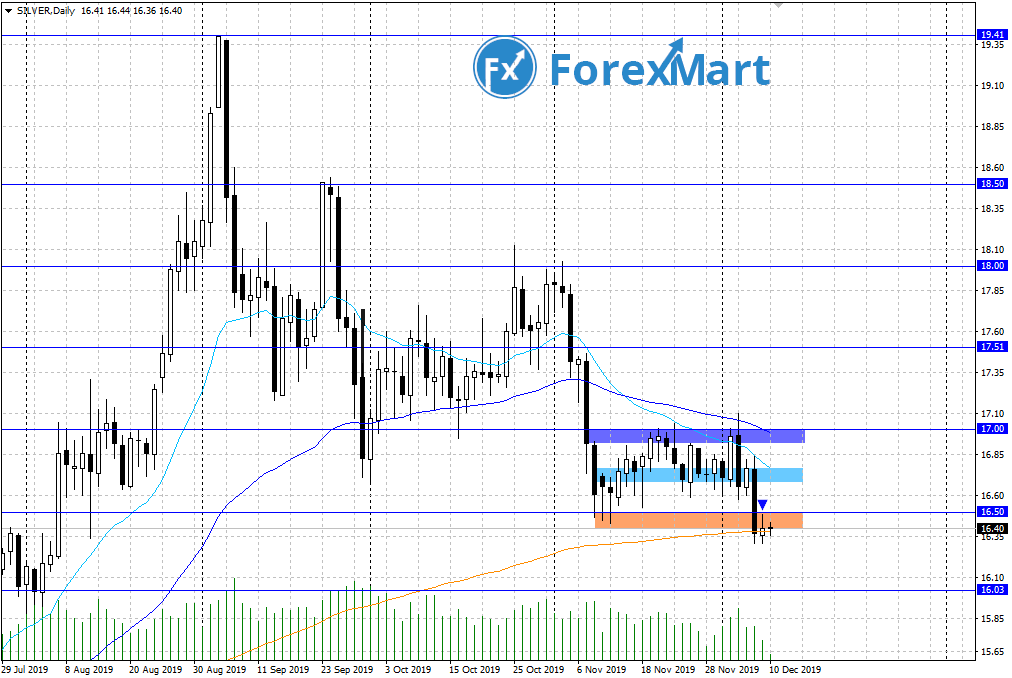 Цена XAG/USD пробила нижнюю границу бокового диапазона 16.50-17.00 и теперь консолидируется на линии экспоненциальной скользящей средней за 200 дней – EMA 200.