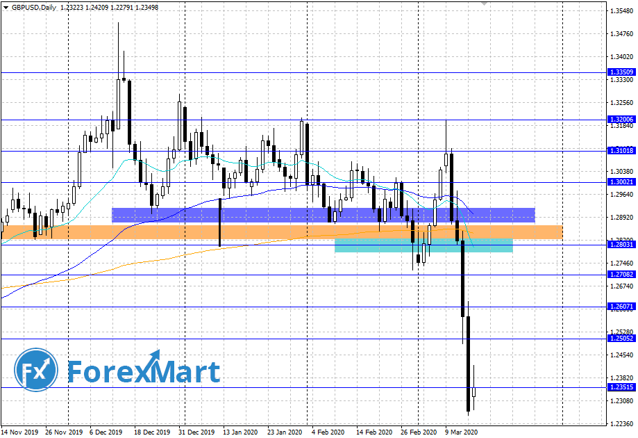 Валютная пара фунт стерлингов/доллар США в ходе торгов на прошлой неделе потеряла почти 8000, снизившись до отметки 1.2261. Цена GBP/USD пробила ключевой уровень поддержки 1.2800 и перешла к резкому снижению, обновив минимум с октября 2019 года.