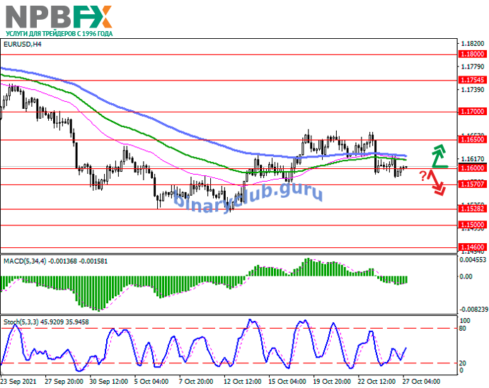 EUR/USD: евро консолидируется вблизи отметки 1.1600 27.10.2021