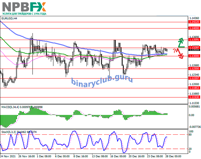 EUR/USD: инструмент развивает флэтовую динамику торгов 28.12.2021