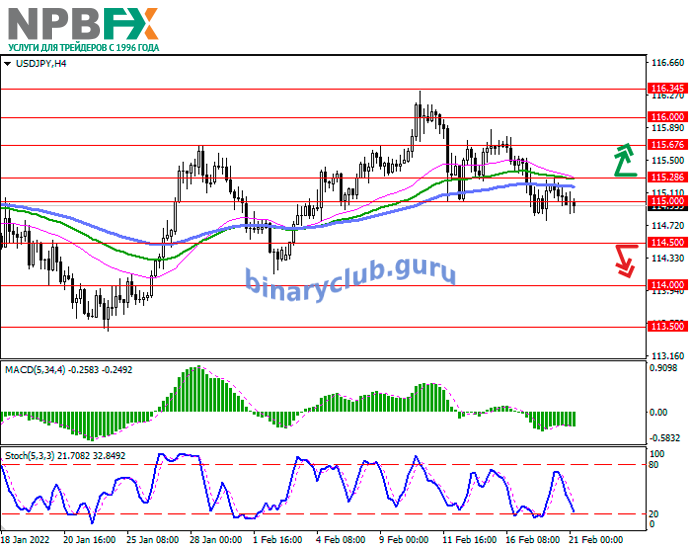USD/JPY: пара консолидируется возле отметки 115.00 21.02.2022