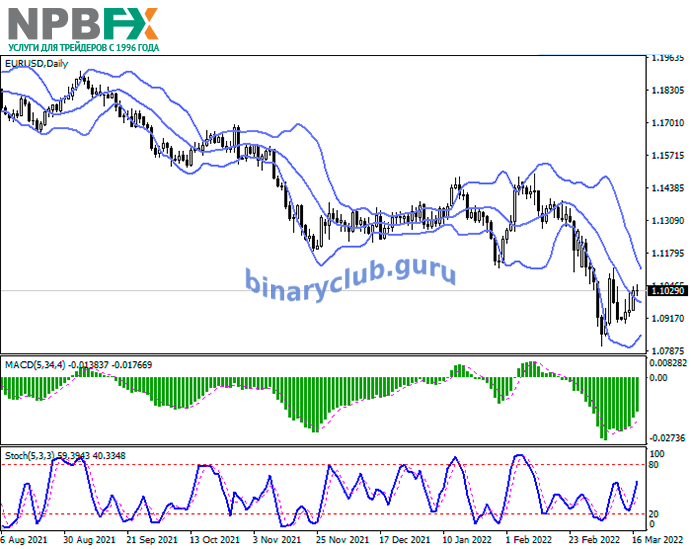 EUR/USD: консолидация возле отметки 1.1000 17.03.2022