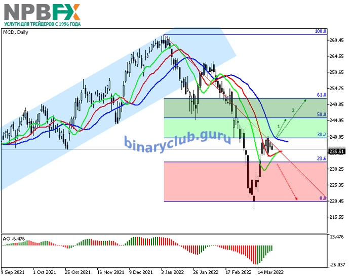Бумаги крупнейшей мировой сети быстрого питания McDonald’s Corp. торгуются в районе 235.00.