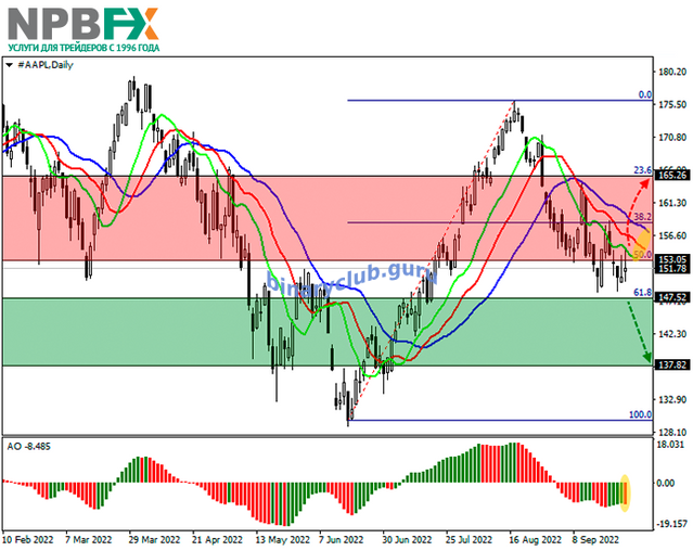 Акции Apple Inc., мирового гиганта в области разработки и продажи персональных и планшетных компьютеров, движутся в коррекционном тренде в районе отметки 152.00.