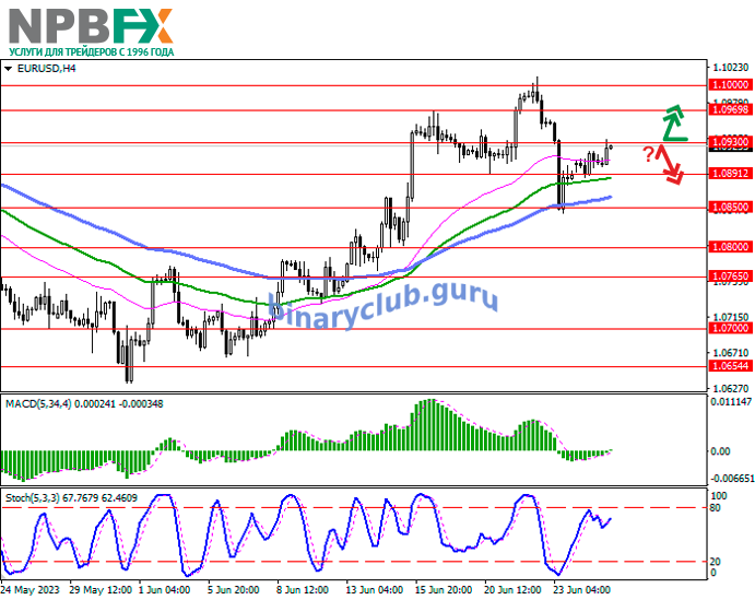 EUR/USD: коррекция после «медвежьего» завершения торгов на прошлой неделе 27.06.2023