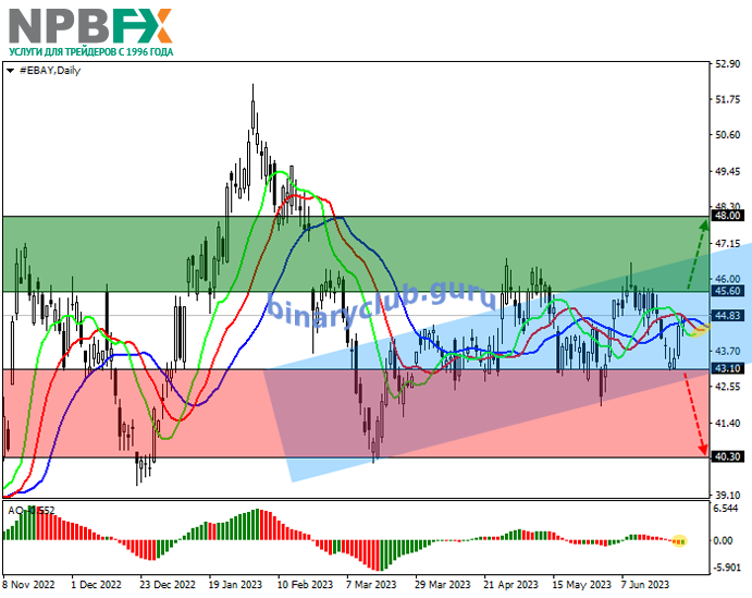 Акции eBay Inc., американской интернет-ритейлинговой компании, корректируются на уровне 45.00.