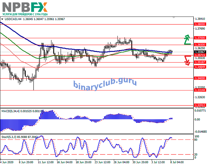 Уровни сопротивления: 1.3650, 1.3700, 1.3800.