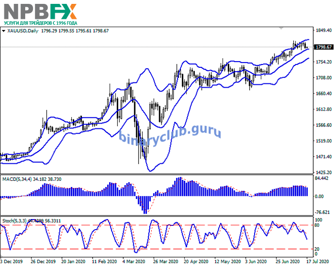 XAU/USD: цены на золото корректируются 17.07.2020