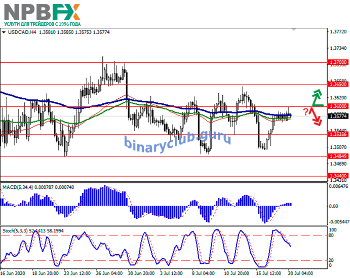 Уровни сопротивления: 1.3600, 1.3650, 1.3700.
