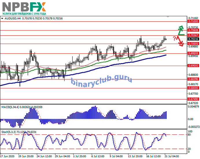 Уровни сопротивления: 0.7036, 0.7060, 0.7100.