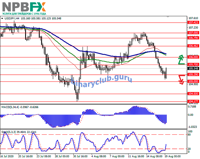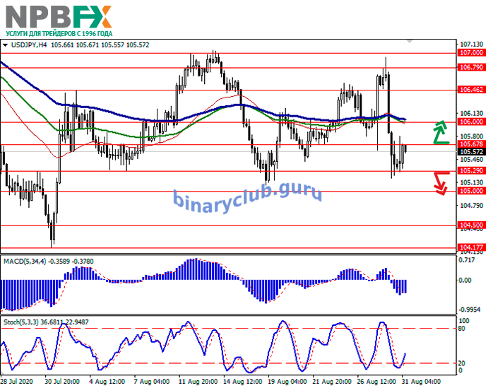 Уровни сопротивления: 105.70, 106.00, 106.46, 106.79.