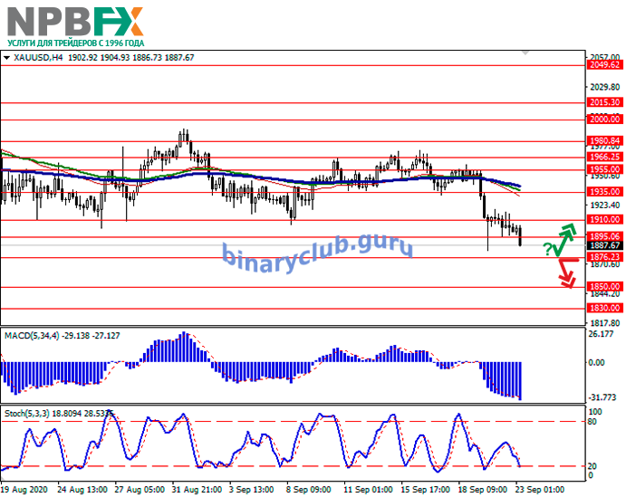 XAU/USD: золото на пороге новых минимумов 23.09.2020