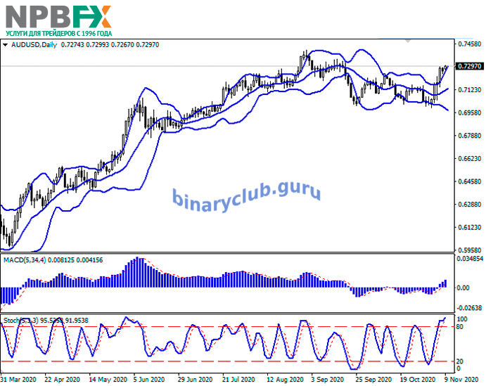 Австралийский доллар умеренно укрепляется против валюты США в ходе сегодняшней азиатской сессии, торгуясь на новых локальных максимумах с 21 сентября. Поддержку инструменту оказывают слабые позиции по американской валюте, которая остаётся под давлением результатов президентской гонки в США. Напомним, что согласно предварительным итогам, демократ Джо Байден, вероятно, станет новым президентом США, что повлечёт за собой резкое увеличение экономического стимулирования и отмену ряда спорных законов, принятых при администрации Дональда Трампа.