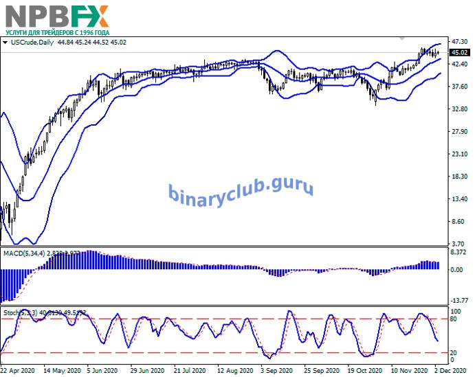 Некоторую поддержку инструменту оказали технические факторы, пока инвесторы по-прежнему ожидают каких-либо решений от ОПЕК+. Картель собрался на заседание, где обсуждается возможное продление действующих ограничений на добычу энергоносителя. По последней информации, на переговорах удалось достичь определённого прогресса, однако пока официальных комментариев не поступало. Вчера на курс положительно повлиял отчёт от Минэнерго США, который отразил снижение запасов нефти и нефтепродуктов в США на 0,679 млн баррелей после сокращения на 0,754 млн баррелей за прошлый период. Впрочем, аналитики рассчитывали на куда более значительное сокращение запасов — на 2,358 млн баррелей. Кроме того, росту покупательских настроений способствовали новости из Великобритании, где власти одобрили вакцины против коронавируса от компаний Pfizer и BioNTech. Старт кампании по вакцинации в стране ожидается уже 7 декабря.