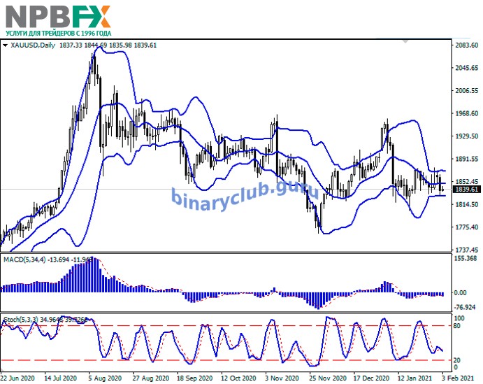 Для открытия длинных позиций можно опираться на пробой отметки 1850.00 вверх. Тейк-профит — 1875.09–1880.00. Стоп-лосс — 1835.00. Срок реализации: 1-2 дня.