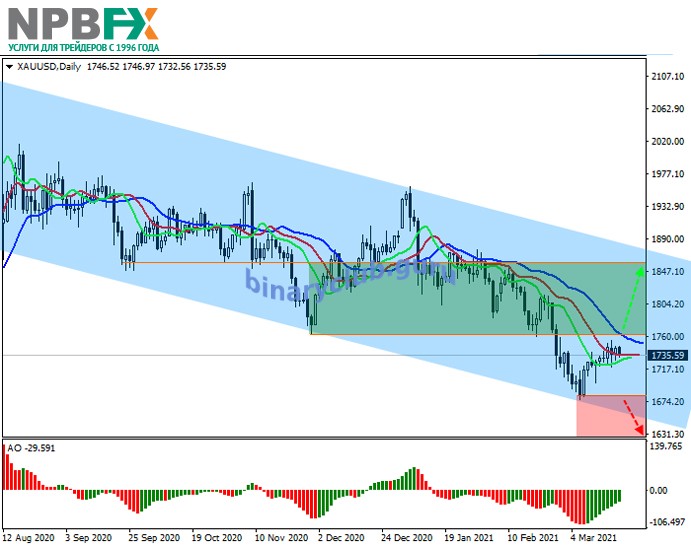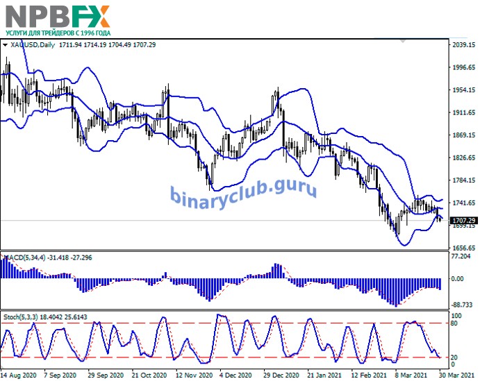 XAU/USD: активный нисходящий тренд 30.03.2021