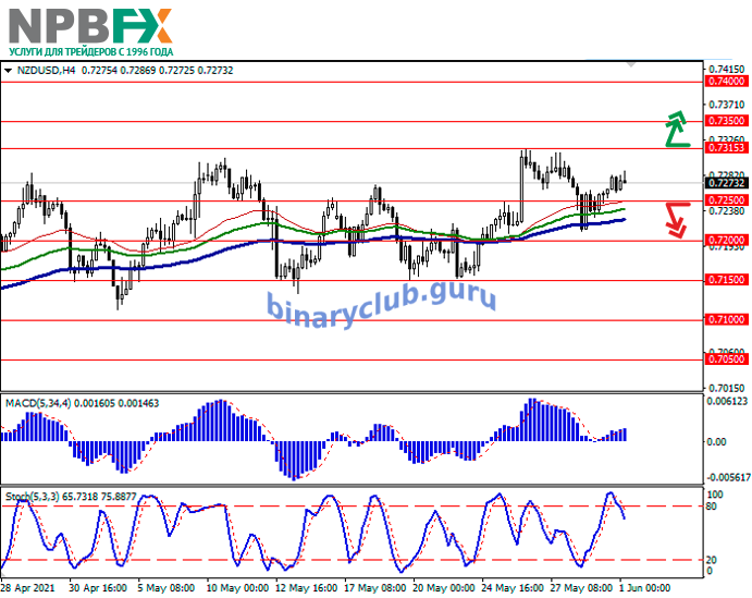 Уровни сопротивления: 0.7315, 0.7350, 0.7400.