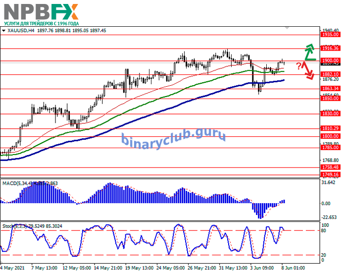 XAU/USD: золото вновь консолидируется вблизи 1900.00 8.06.2021
