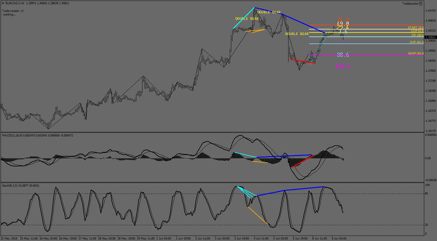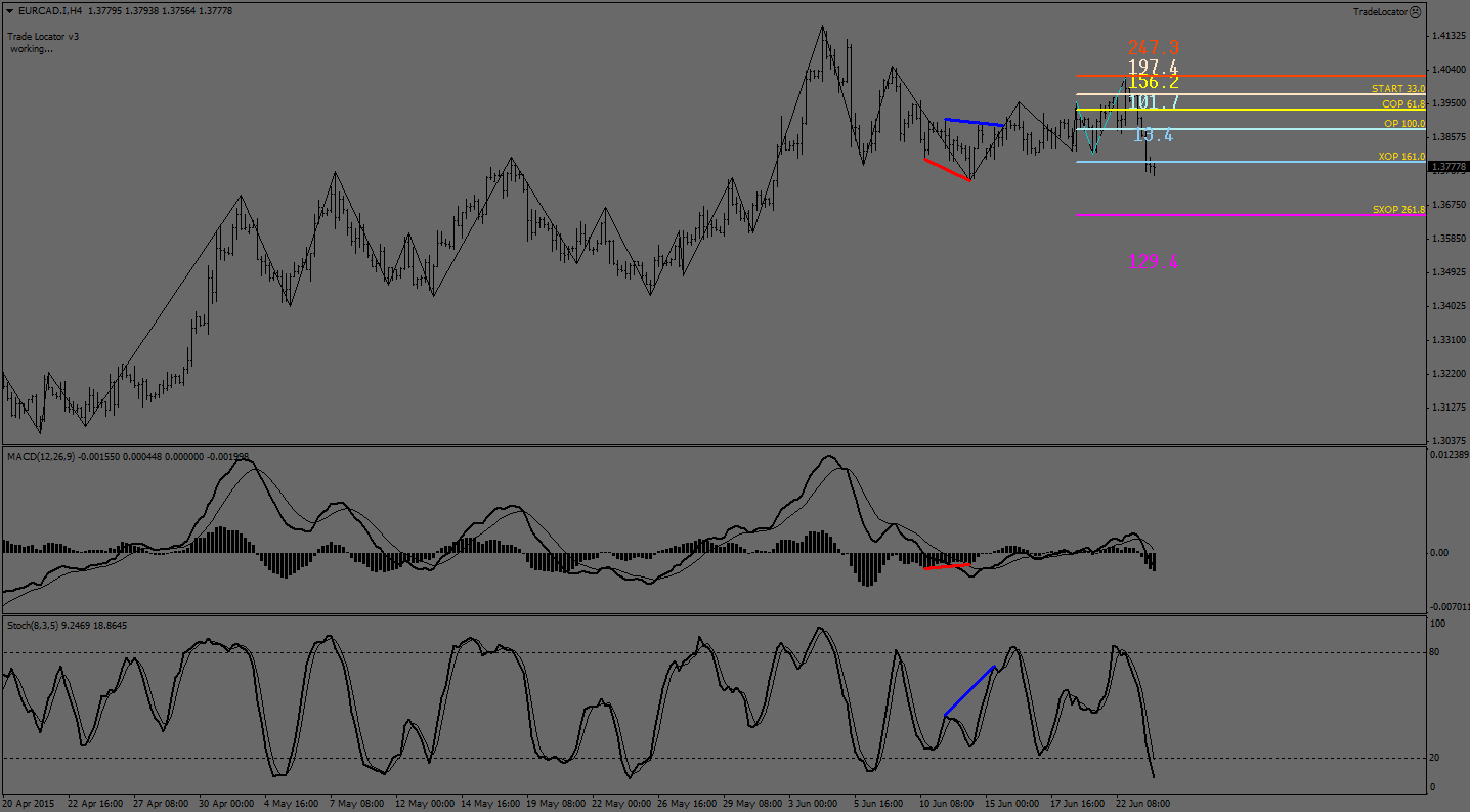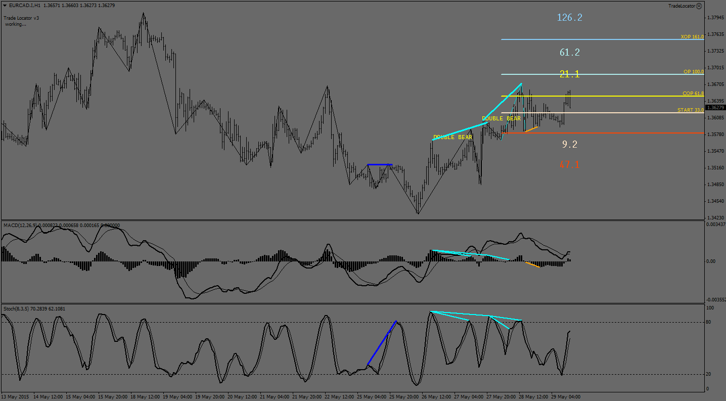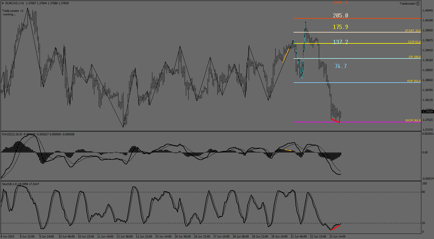 По валютной паре евро канадец не смотря на возможность дальнейшего среднесрочного роста курса по 4-х часовому графику имеем формирование на сегодня сигнала к продажам по часовому графику и перспективу краткосрочного падения курса к расширенной целевой точке ДиНаполи = 161.8% и далее уже по факту пробоя указанного уровня к супер расширенной целевой точке ДиНаполи = 261.8% где можно зафиксировать прибыль по продажам.