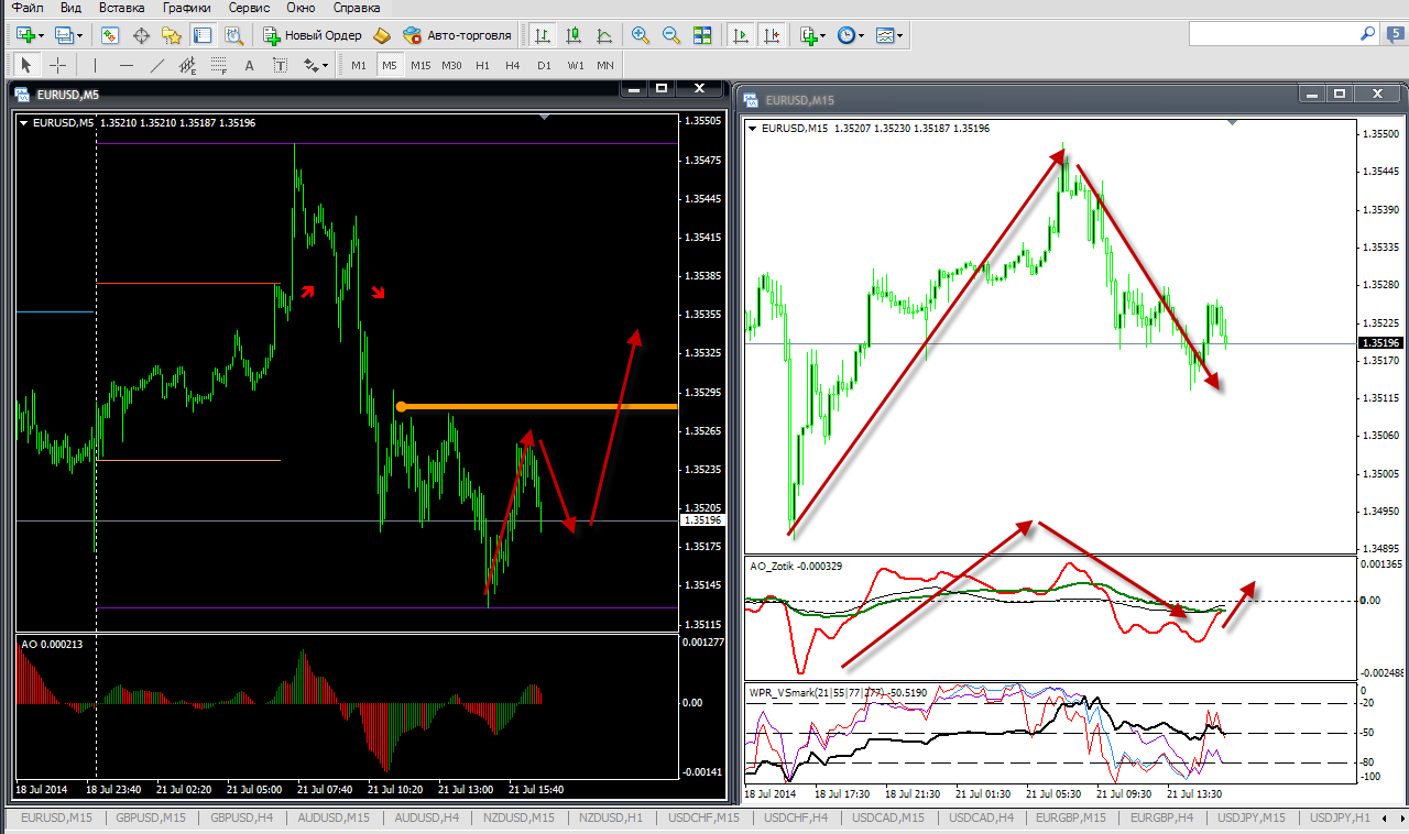 Снижение от хай лоу последних дненй торговли все таки достигло 38го фибоуровня от всего роста валютной пары евро-доллар , сейчас хоть и с запазданием должен доработать бычий вульф , при этом велика вероятность отработки импульса вверх на графике М15 , по этому пока все таки по прежнему ожидаю роста .