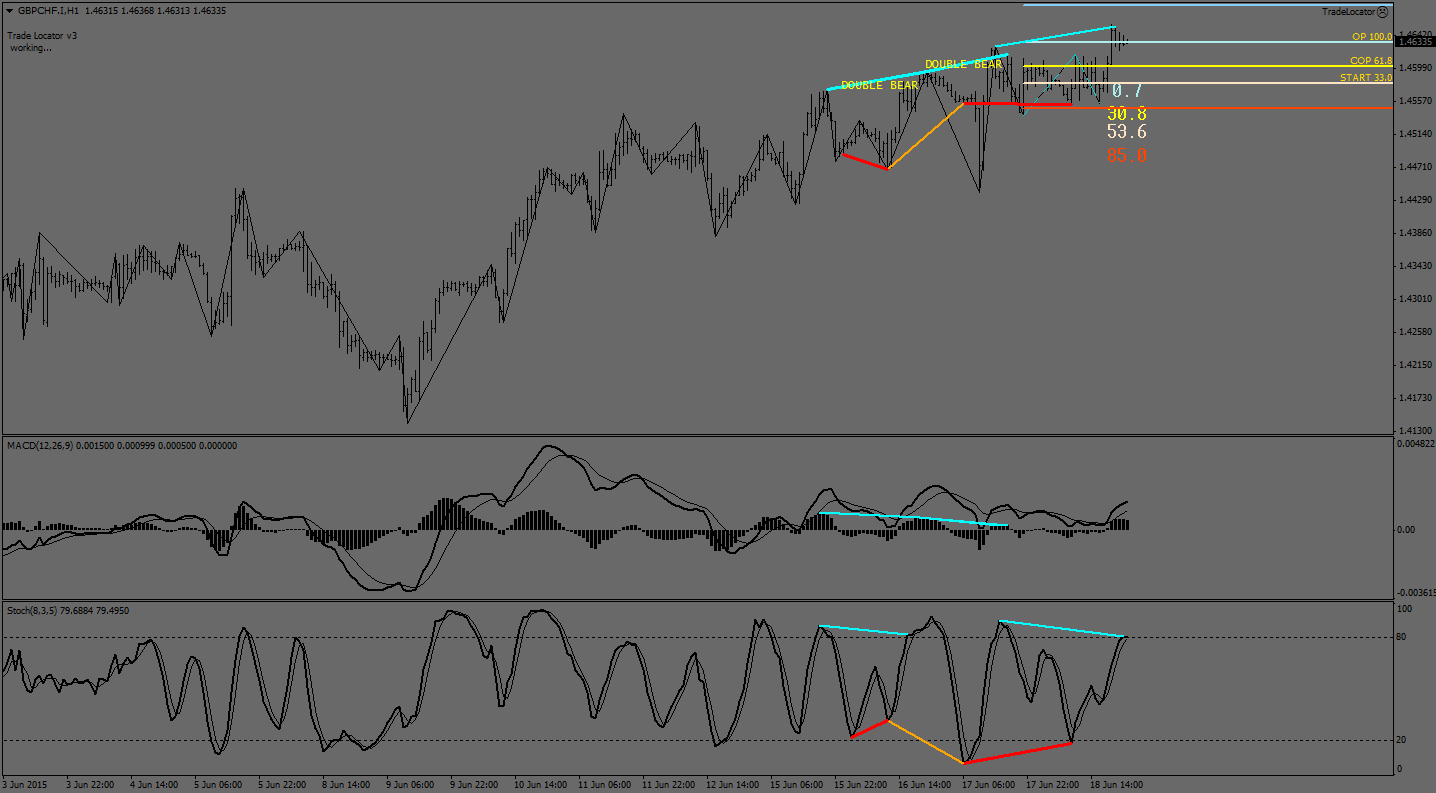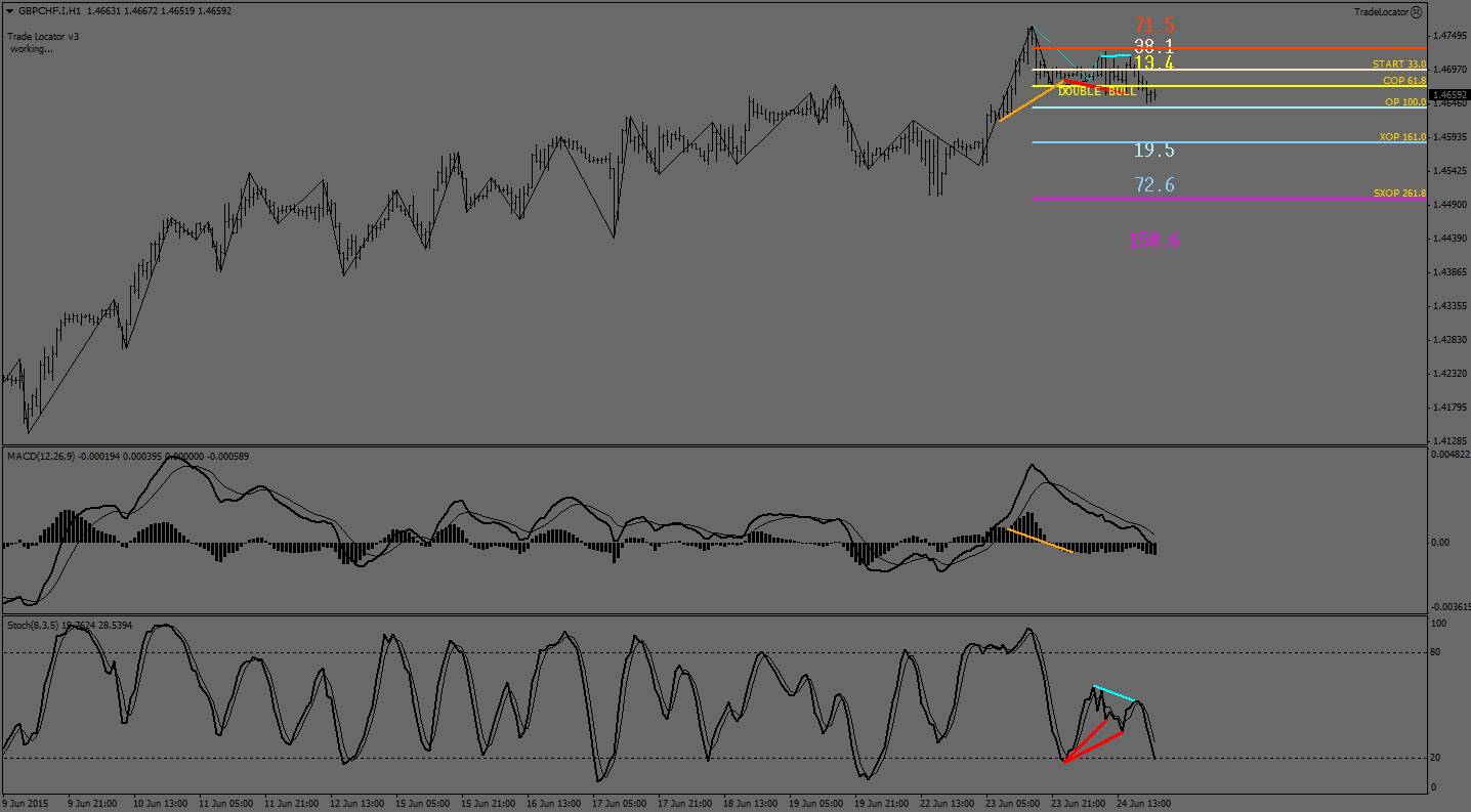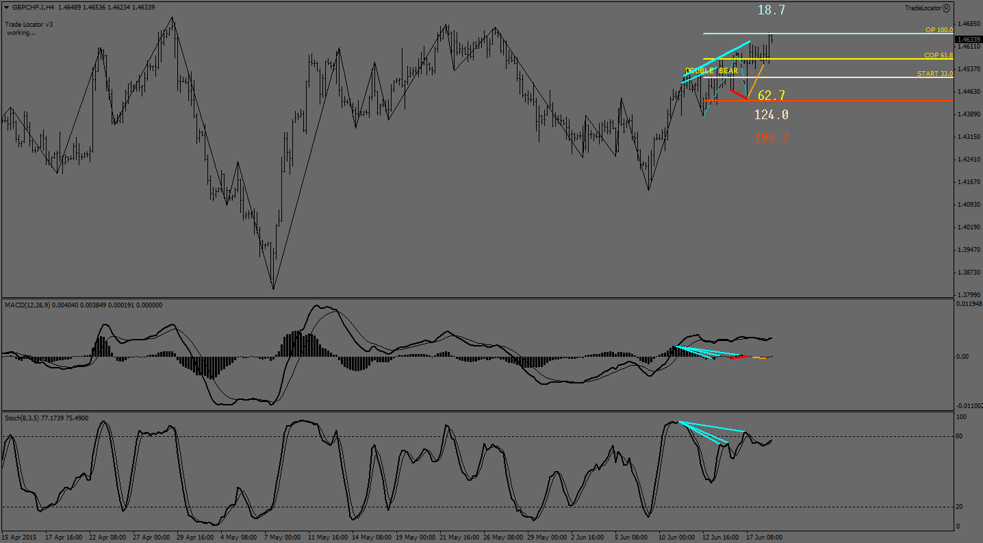 По валютной паре фунт франк на часовом графике идет отработка сигнала к продажам сформированным ранее и отработка медвежьей дивергенции. так что на сегодня ожидаю продолжение падения пары к расширенной целевой точке ДиНаполи = 161.8% и далее уже по факту пробоя указанного уровня к супер расширенной целевой точке ДиНаполи = 261.8%. не смотря на анализ 4-х часового графика где есть возможность среднесрочного роста.
