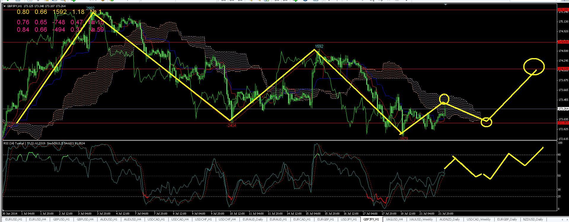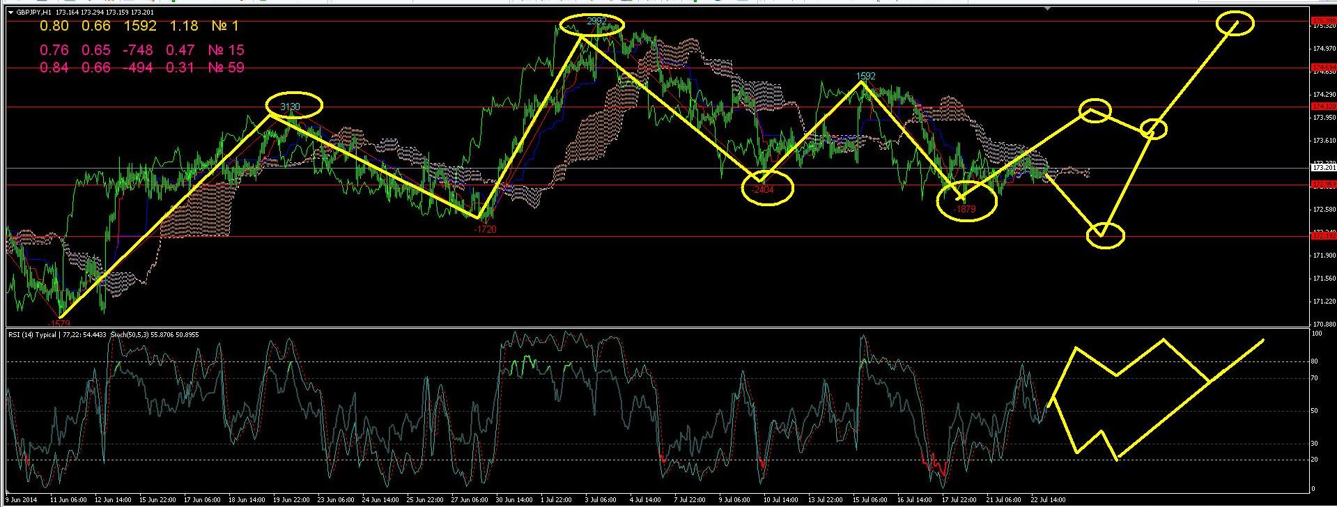 По паре GBPJPY на часовом графике пара постепенно корректирует вверх и жду завершения первой волны коррекции на уровне 173,30 далее вероятно будет снижения к уровню 172,80 откуда будет еще волна укрепления к уровню 174,10,пока такой вариант рассматриваю как основной, покупки при снижения считаю основным направлением.В долго срок пока смотрю в сторону продаж.