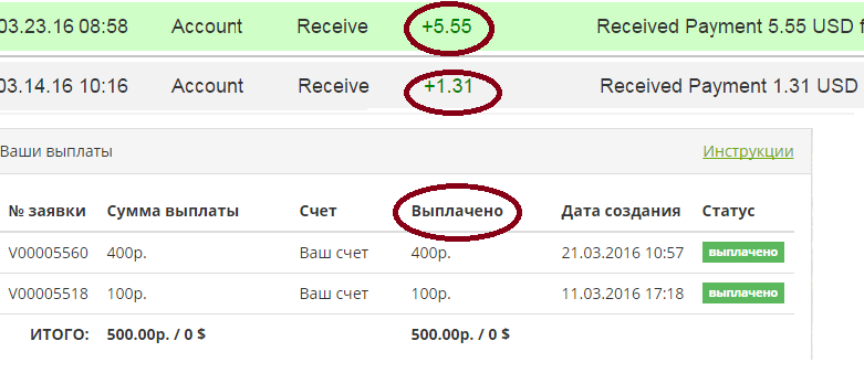 Скрин выплат: