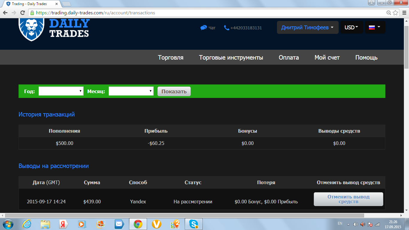 Относительно службы поддержки Daily-Trades тоже хочется присоединиться к положительным отзывам. Поддержка доступна в чате и по горячей линии круглосуточно и быстро решает любую возникшую проблему.