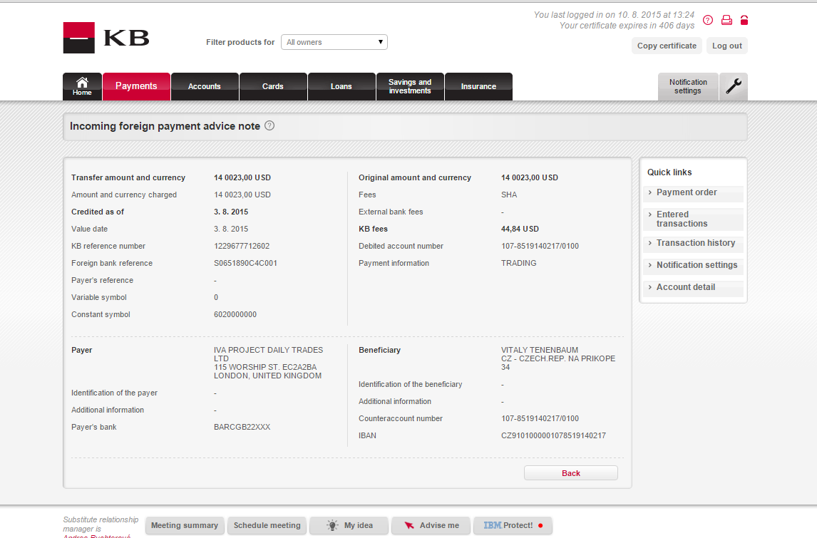 Прикрепляю скрины с моего банка, и скрин кабинета как вы и просили, я не стесняюсь и не боюсь показывать свое лицо и информацию о себе (в отличие от некоторых), так как это информация достоверна.