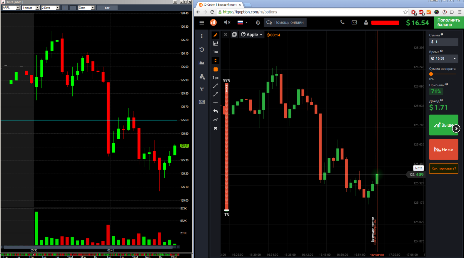 А именно эти инструменты и позволяет скальперу быть успешным в 70-85% случаев. И если бы эти опционы были не двухминутные, а пятнадцати секундные, то я бы полностью разорил этого брокера.