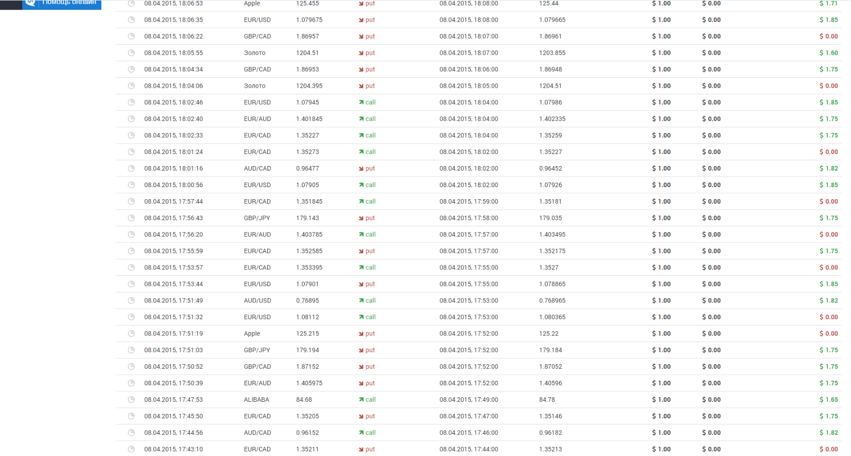 Здесь я рекомендую всем, кто хочет обучиться скальпингу и не знает, как торговать опционами, изначально попрактиковаться на долларовых ставках. Это не демо-режим, соответственно вам не удастся расслабиться, и, в тоже время, ставка будет минимальна, что не сильно скажется на вашем финансовом состоянии.