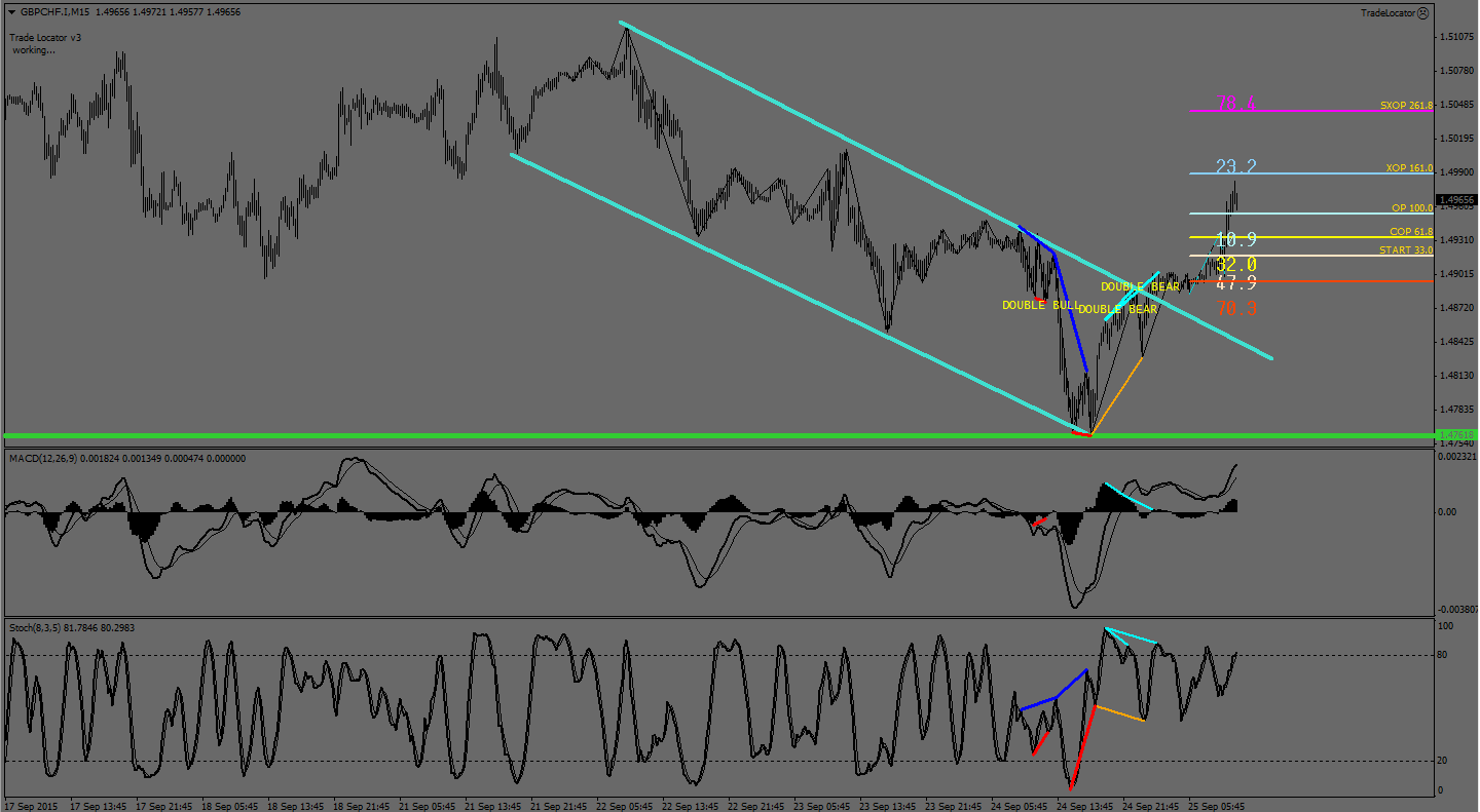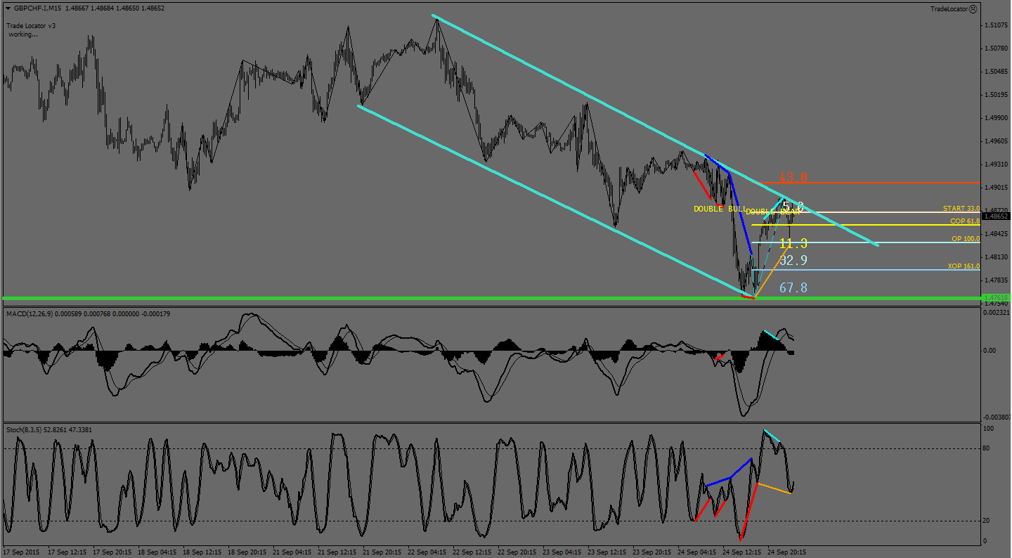 ну да по фунт швейцарскому франку канал отработался хорошо. И цена четко практически пункт в пункт отскочила от линии поддержки формации. Вот как раз каналы тем и хороши, что по ним могут формироваться сигналы в две стороны, а также по двум линиям. А вот если говорить об использовании линии сопротивления при нисходящем тренде, то ее можно использоваться только для продаж на отбое от нее и для покупок на ее пробое. Я например не знаю что лучше отрабатывается покупка при касании нижней границы канала, или покупки при пробое верхней границы формирующегося нисходящего канала. Если честно то в большинстве случаев я работаю с линией сопротивления нисходящего канала, а не линией поддержки.