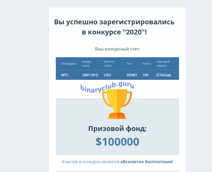 Следует заметить: Все призовые суммы, это бонусы, которые вы будете использовать в торгах, их вы не сможете вывести, а вот прибылью сможете распоряжаться по своему усмотрению.