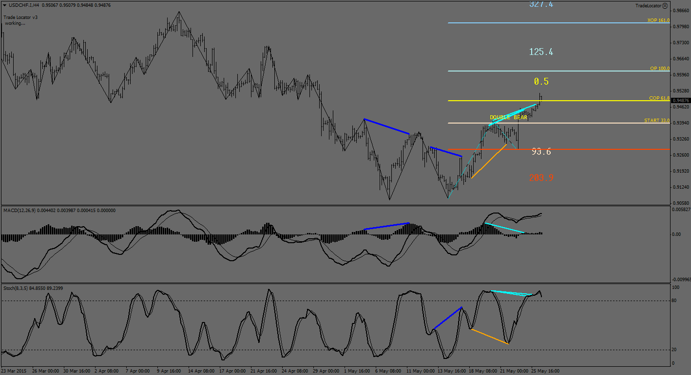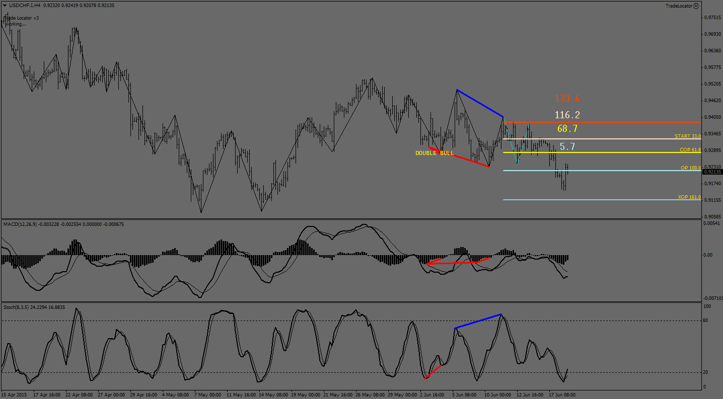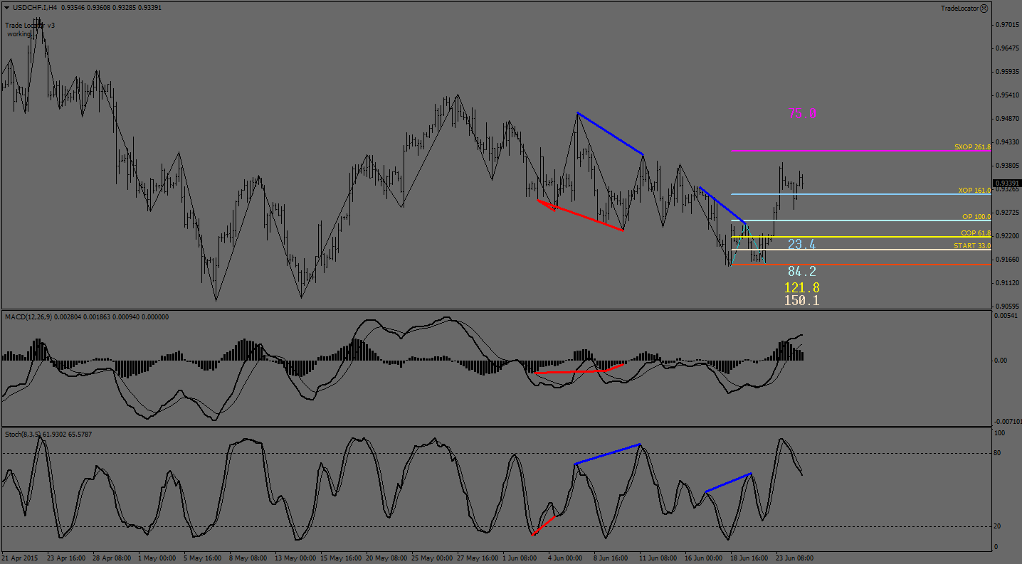 По паре доллар франк на сегодня получили сигнал к покупкам подтвержденный формированием сразу двух бычьих дивергенций, что дает основания прогнозировать дальнейший рост по паре доллар франк к расширенной целевой точке ДиНаполи = 161.8% и далее уже по факту пробоя указанного уровня к супер расширенной целевой точке ДиНаполи = 261.8% где можно зафиксировать прибыль по покупкам.