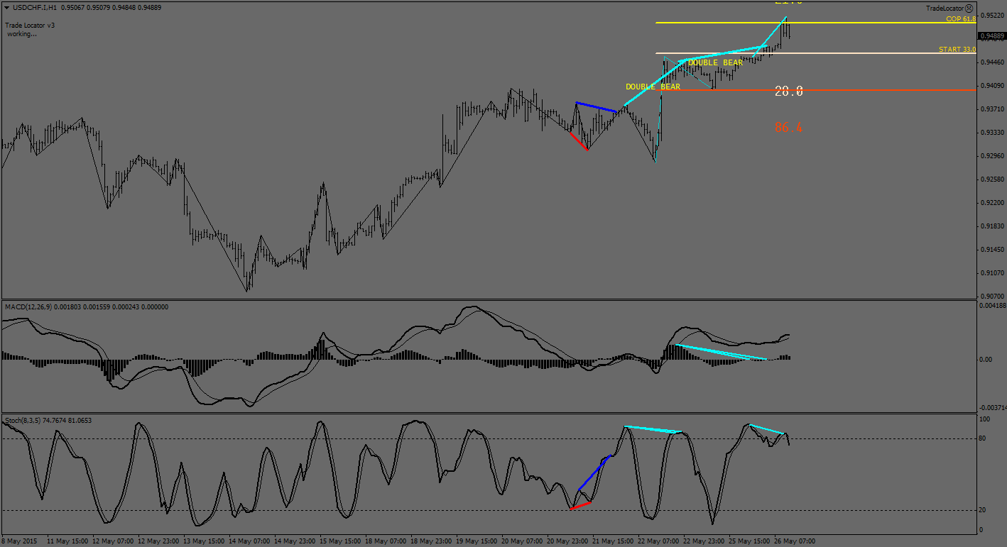 По франку не смотря на формирование медвежьей дивергенции на часовом графике имеем перспективу роста курса к к расширенной целевой точке ДиНаполи = 161.8% и далее уже по факту пробоя указанного уровня к супер расширенной целевой точке ДиНаполи = 261.8% где можно зафиксировать прибыль по покупкам. Сигнал к покупкам на часовом графике лишь подтверждает описанную возможность на рост курса пары доллар франк.