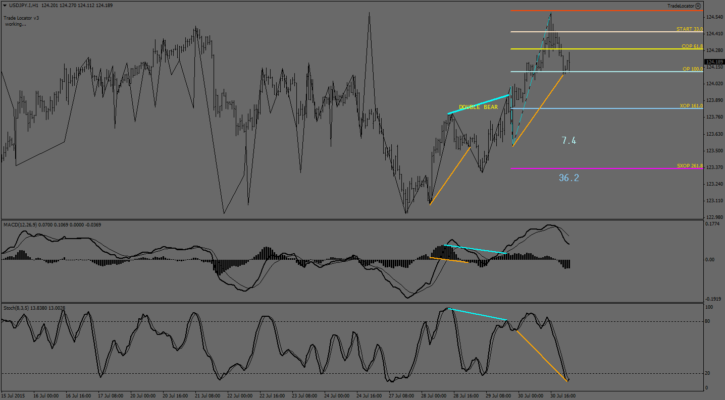 По валютной паре доллар иена рост курса по 4-х часовому графику можно считать отработанным и пока не смотря на присутствующую бычью дивергенцию ожидаю снижение курса к расширенной целевой точке ДиНаполи = 161.8% и далее уже по факту пробоя указанного уровня к супер расширенной целевой точке ДиНаполи = 261.8% где можно зафиксировать прибыль по продажам.