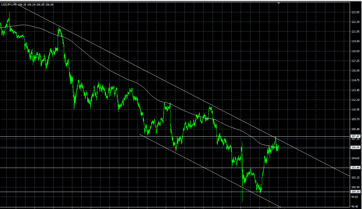 Пара по-прежнему ходит в рамках нисходящего канала и находится сейчас у верхней ее границы. Борьба за МА (Н4) скорее всего обернется глубоким падением в район 100,30 (в долгосрочной перспективе). Пока же, уровень 103,40 может послужить хорошей поддержкой.