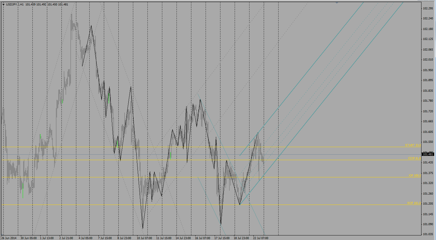 Валютная пара доллар иена не смотря на то, что торгуется в рамках восходящего канала, который был сформирован после пробоя верхней границы обозначенного нисходящего канала, по уровня ДиНаполи может отработать южное движение к супер расширенной целевой точки ДиНаполи = 261.8%, что находится на минимуме 101.20. До формирования сигнала к покупкам по ДиНаполи лучше оставаться вне рынка по паре доллар иена.