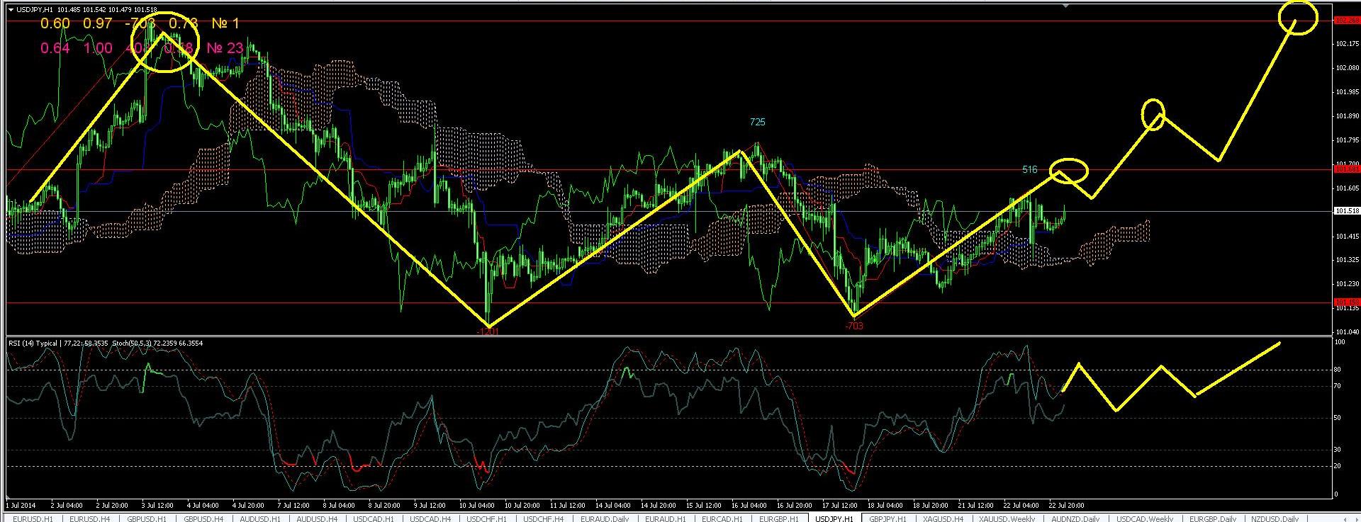 По паре USDJPY на часовом графике пока пара двигается по прогнозу вверх, как и указывал ранее, фигура пока идеально отрабатывает W,и поэтому на небольших коррекциях можно докупать пару, цель первая почти достигнута на уровне 101,70 после жду снижения и рост к главной цели на уровне 102,20,Долго срок все так же за продажами.