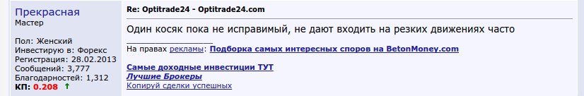 Отзывы о Optitrade24 на счет торговой площадки в целом позитивные, но есть и не сильно взрачные моменты. Вот один из жалобных отзывов о Optitrade24:
